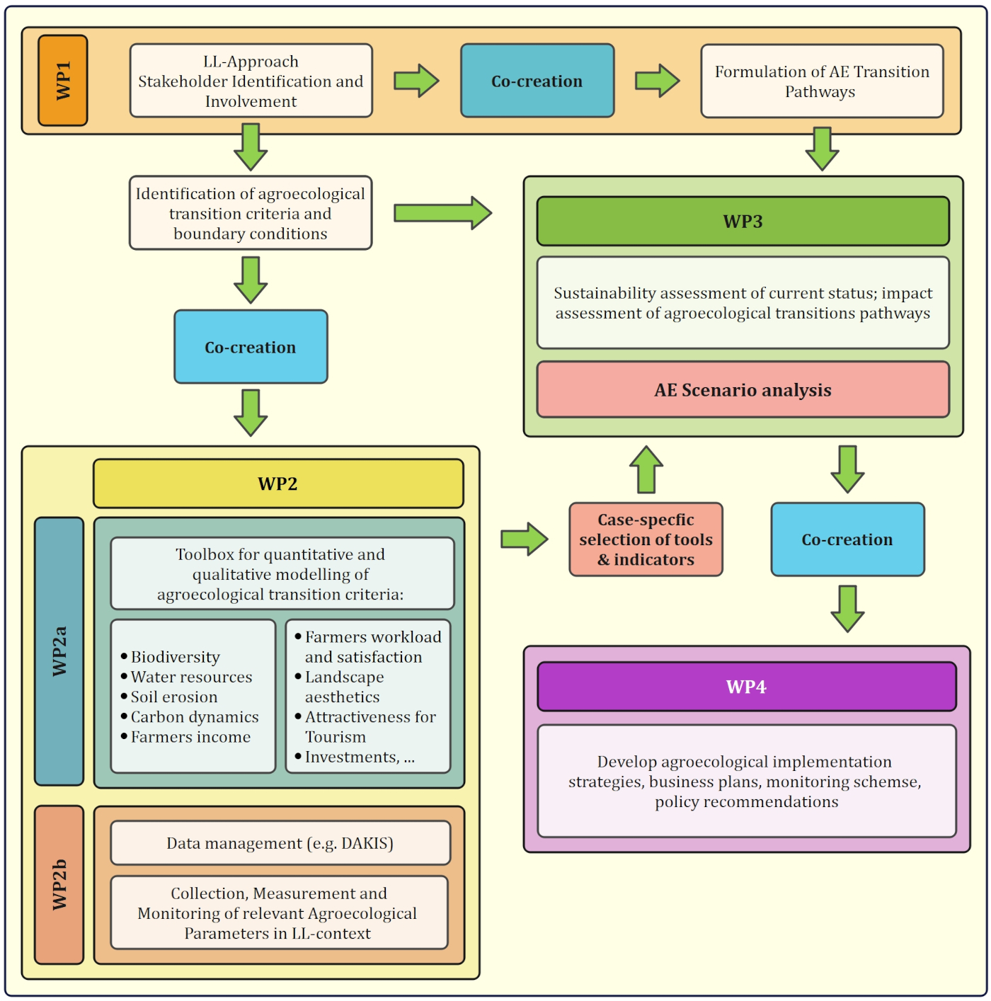 Figure 1: AGRECO4CAST general project scheme showing WPs and their interactions. © ZALF.