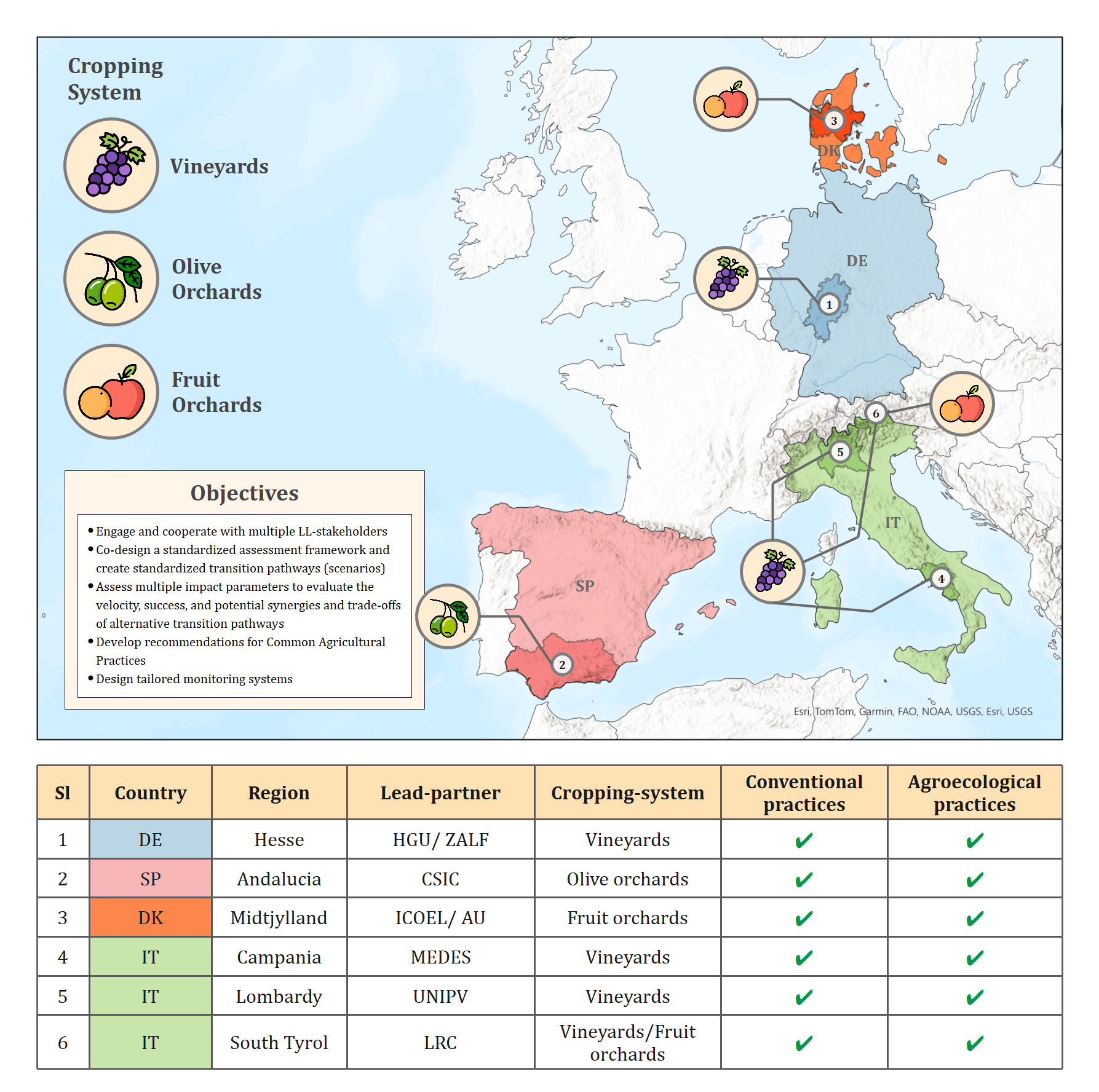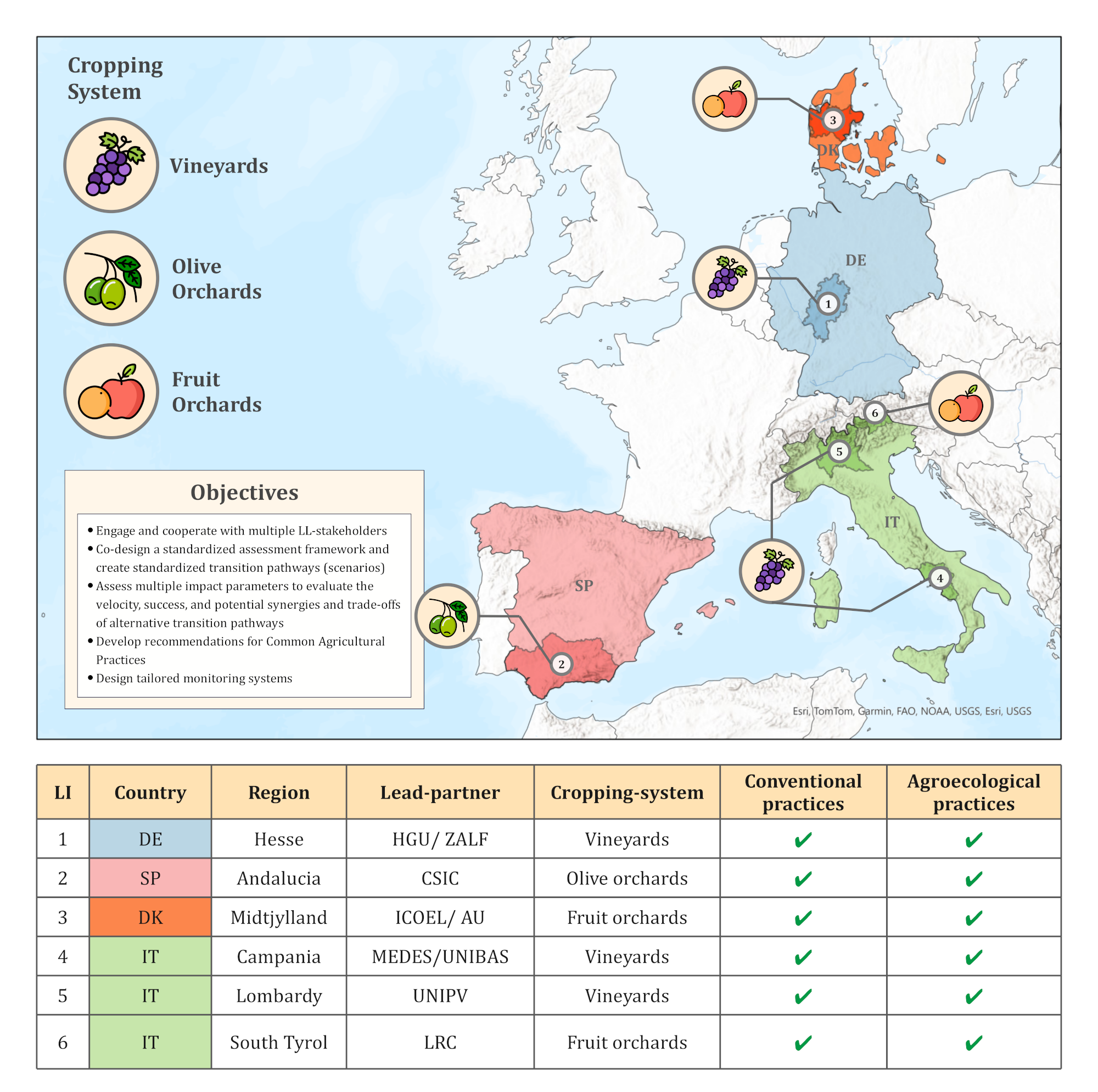 Moreover, AGRECO4CAST will assess the potential of optimized spatial configurations of agroecosystem elements from farm to landscape scale. For this, we selected already existing LLs and LL-like cases among the partners of 5 EU countries (DE, IT, ES, DK, NL).